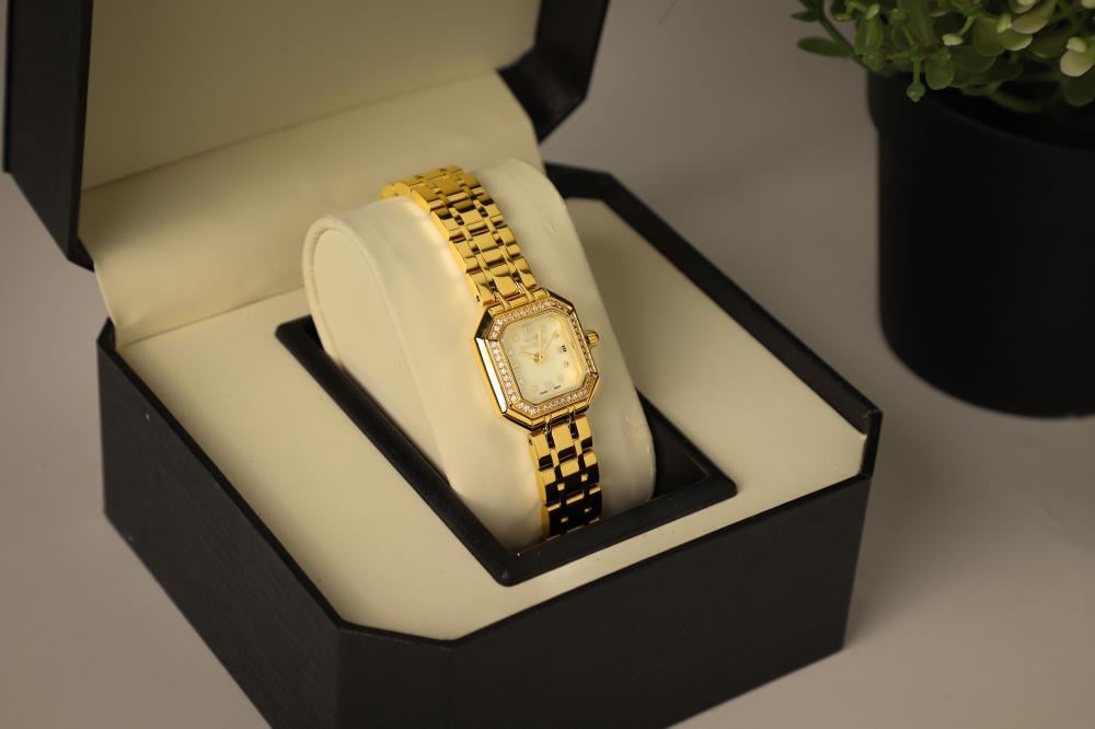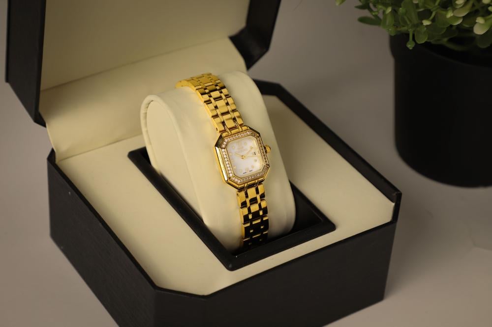 - ساعة نسائية بضمان ذهبي لمدة ثلاث سنوات.