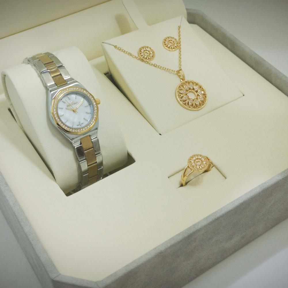 طقم نسائي ساعة وسلسال وخاتم زركون